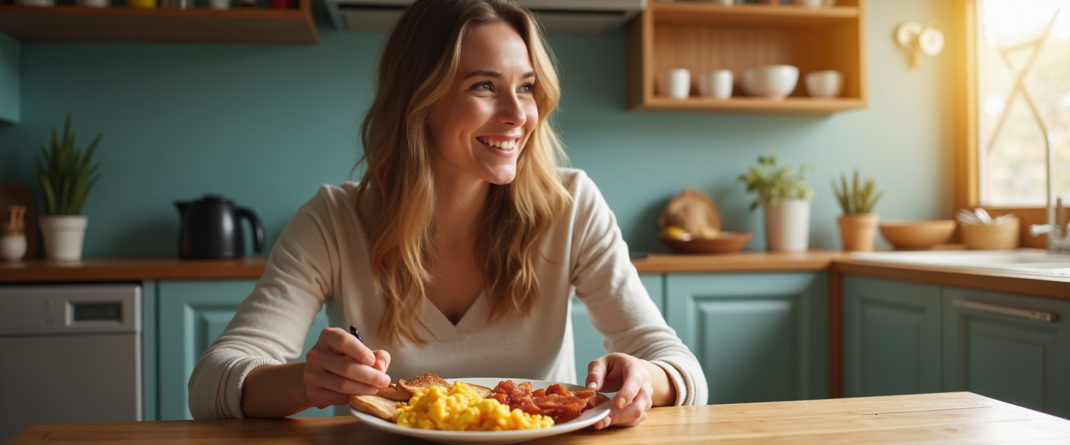 Meet Anna, a university student who has a busy but well-organized daily routine. Anna always wakes up at 7:00 a.m. She never hits the snooze button because she likes to start her day early. After she gets up, she usually takes a quick shower and makes herself a healthy breakfast, which she often enjoys while listening to her favorite podcast.