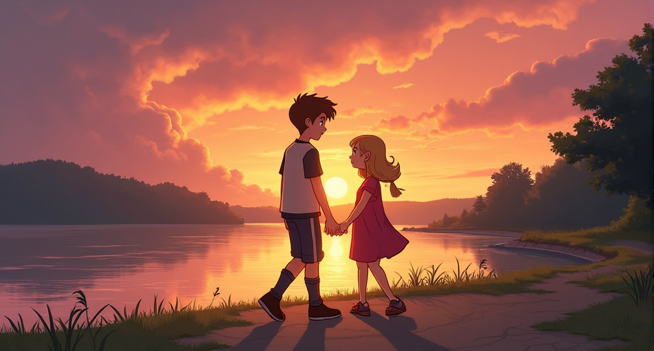 One evening, as the sun was setting, they walked together along their favorite path by the river. The golden light reflected on the water, casting a soft glow on everything, but Emma felt a storm brewing in the air between them. She glanced at Lucas, his face tense and his hands shoved deep in his pockets.